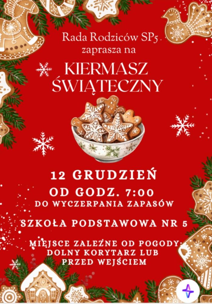 RADA RODZICÓW ORGANIZUJE KIERMASZ ŚWIĄTECZNY W SP5 12 GRUDNIA OD GODZINY 07:00